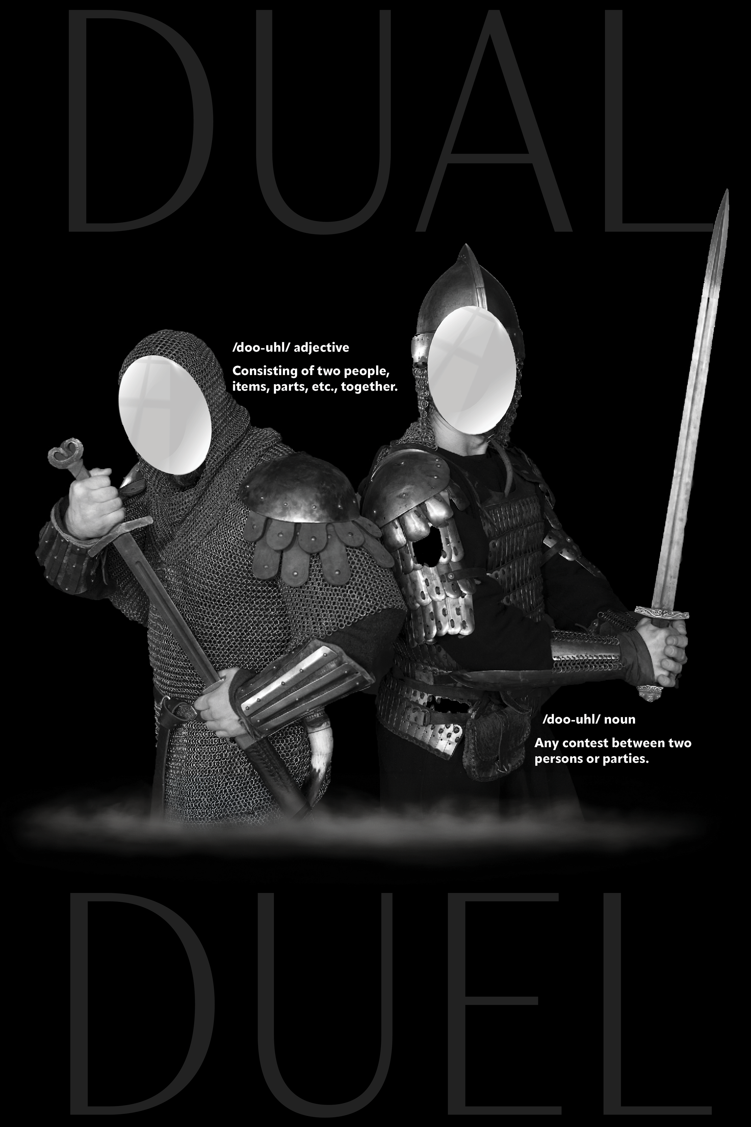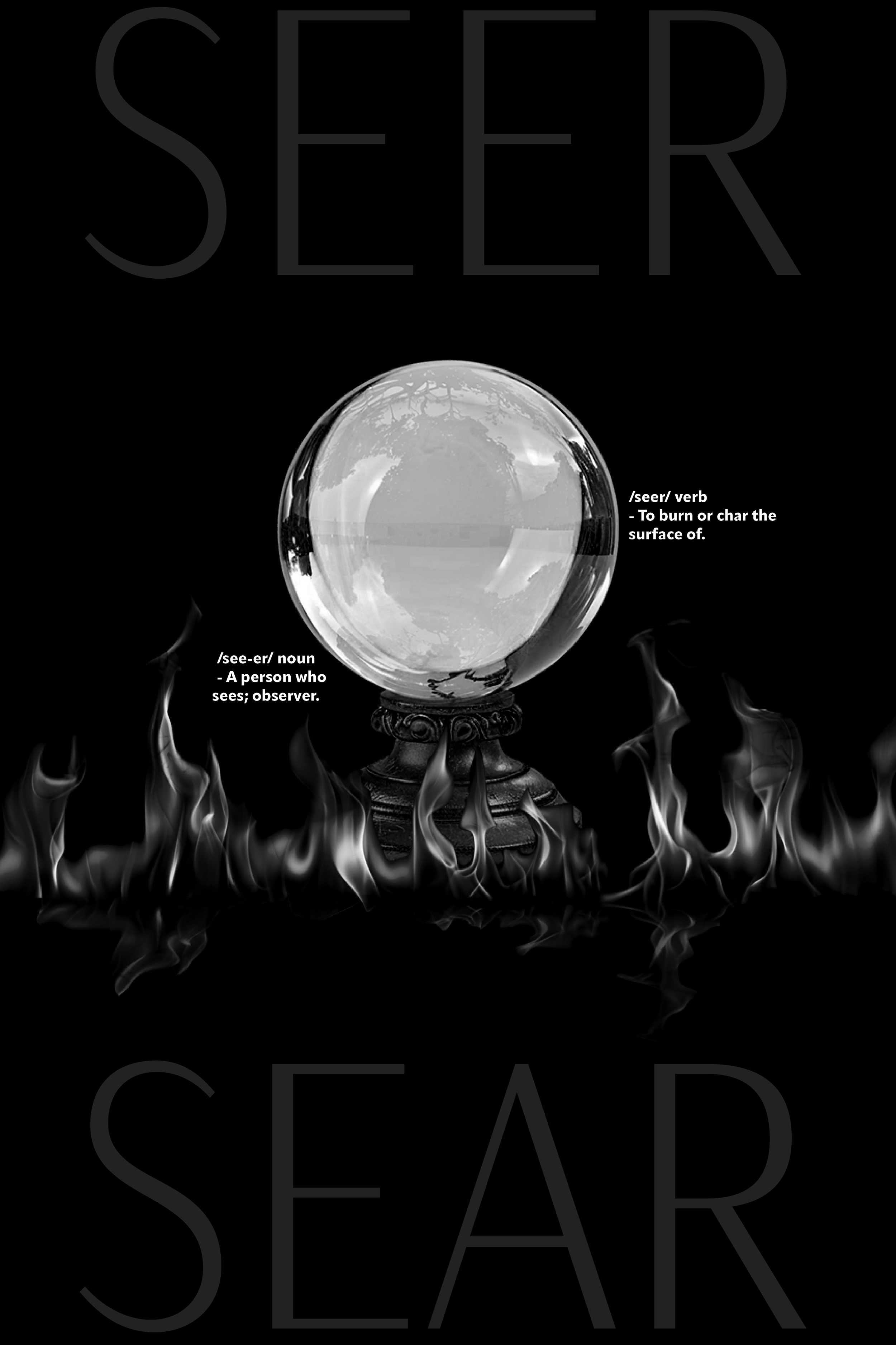 This series was created for a school project where we were tasked with choosing two words that were homophones and creating an image based off of them. For my pieces, I wanted them to reflect back onto the viewer, so I glued physical mirrors onto the posters for an interactive element.
